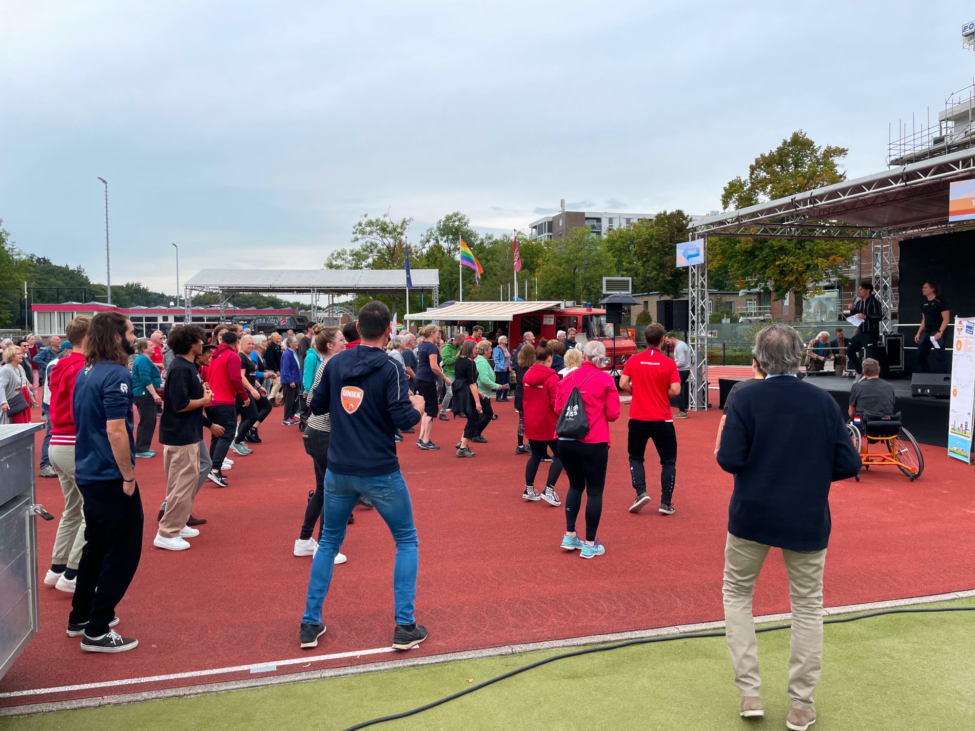 En niet alleen de organisatie was tevreden, ook de bezoekers, vertelt Janneke. “We stonden bij de uitgang om bezoekers te vragen hoe ze het vonden en kregen enthousiaste reacties. Bovendien gingen veel bezoekers weg met een concrete afspraak, bijvoorbeeld om een keer een proefles te doen. En wie dat niet had, kreeg bij de uitgang het aanbod voor een beweegadviesgesprek.” Arno: Bij het openingswoord van de wethouder stonden verschillende mensen naast elkaar, van directeur tot oudere, mensen van allerlei achtergronden. En al die mensen gingen de hele middag sámen sporten en bewegen. Geweldig toch?!”
