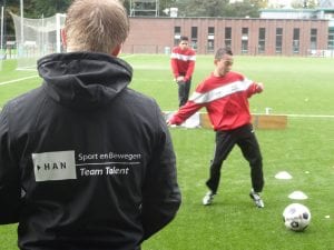 Een voorbeeld daarvan is de Arnhemse wijk Elderveld. “Daar werken we met verschillende partijen zoals Sportbedrijf Arnhem, de gemeente, Topsport Gelderland, sportverenigingen en de wijkvertegenwoordigers vanuit een sportcentrum midden in de wijk. Doel is om samen de wijk sportiever en vitaler te maken en om talent te ontwikkelen. Met elkaar zetten we een programma op waarin ontmoeten, inclusie, bewegen, gezondheid, ontwikkeling en veiligheid samenkomen. Het werk van onze studenten verschilt. Een ALO-student ontwikkelt, geeft en test bijvoorbeeld een beweegworkshop aan kinderen in de wijk, terwijl een masterstudent Sport- en Beweeginnovatie de samenwerking en afstemming tussen de belanghebbende organisaties regisseert. Belangrijk is dat we met alle partijen samen op de plek zitten waar het moet gebeuren. Juist doordat iedereen los is van de eigen vaste werkplek en standaard patronen, ontstaan vaak mooie nieuwe dingen. Collega’s van HAN Sport en Bewegen, zowel docenten als toegepaste onderzoekers, kijken mee en leveren begeleiding en aanvullende kennis, bijvoorbeeld door extra onderzoek.”