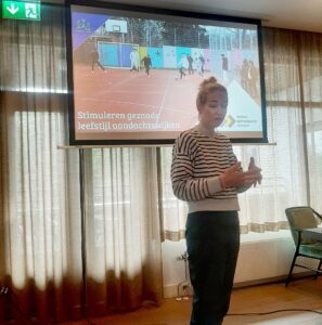 Namens de werkgroep Inclusie LHBTIQ+ vertelde Rosa Holtslag (GSF) over de complexiteit van deze uitdaging. ‘Inclusie LHBTIQ+ is een ingewikkeld en beladen thema,’ aldus Rosa. Ze gaf als voorbeeld de discussie rond de OneLove-band. Dit initiatief startte als een officiele aanpak van de KNVB maar verwaterde uiteindelijk tot iets vrijblijvends. De werkgroep heeft uiteindelijk goed in kaart gebracht waar er kansen liggen om Inclusie LHBTIQ+ te verbeteren. De werkgroep diende ook een subsidie in bij de Alliantie Gelijkspelen en bij de provincie en die is goedgekeurd. Voor dit project zoekt de werkgroep nog drie gemeenten die dit thema willen omarmen. Hier krijgen ze lokale procesbegeleiding voor terug waarbij concreet aan de slag wordt gegaan bij sportclubs die stappen willen zetten rondom de acceptatie van LHBTIQ+ en een positief sportklimaat.